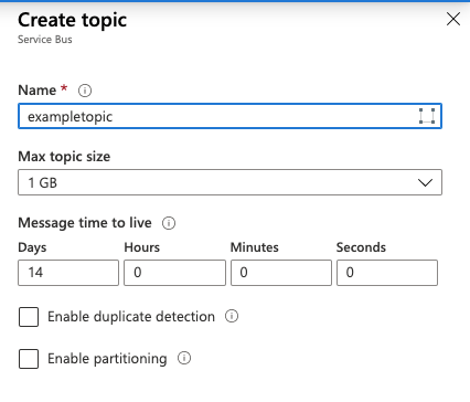 I’m preferring to stay with default setting while creating the topic i.e. partitioning and duplicate detection are set to disabled.