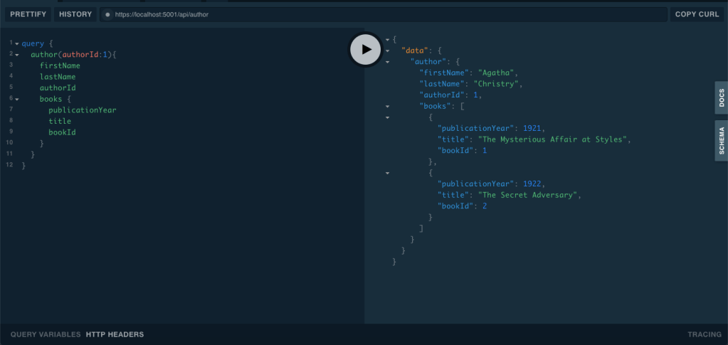 Now, run the application and open the playground UI. You can use the following queries to run author and book details from the data