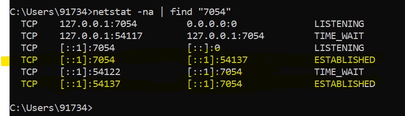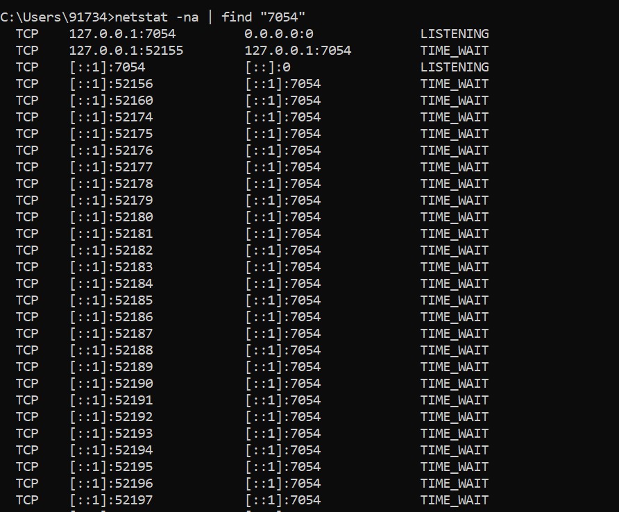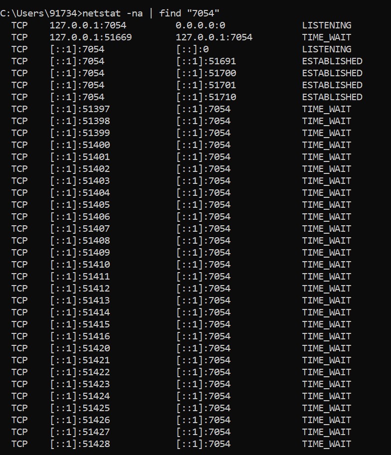 Huh, that’s weird. The application has exited but still, there are a bunch of connections open. They are in the time_wait state which means the connection has been closed on one side(ours) but still waiting for the additional packets coming in on it because of the network delay.