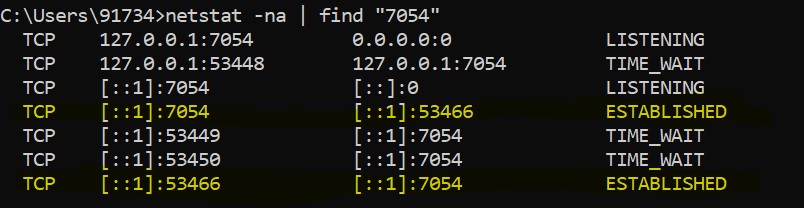 let’s use the netstat tool to understand the state of the socket on the machine running